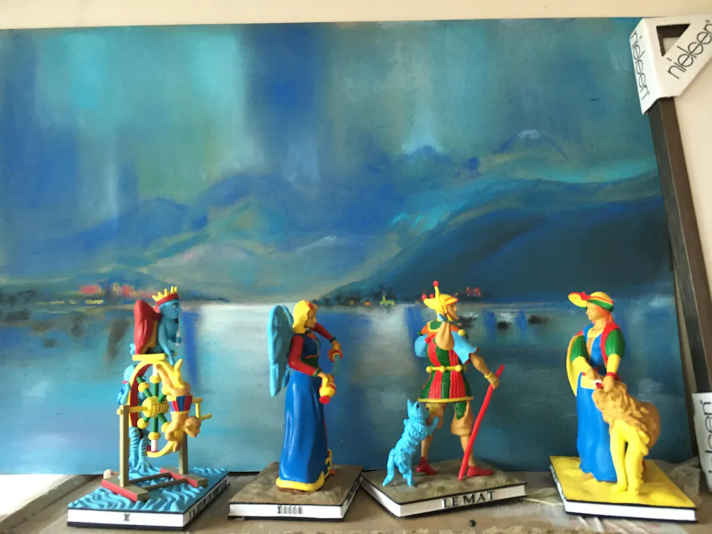 Reproduction fidèle de l’arcane X du Tarot de Marseille, aux dimensions exactes d'une carte : 13,5 cm de haut, socle 6,5 x 8,5 cm.